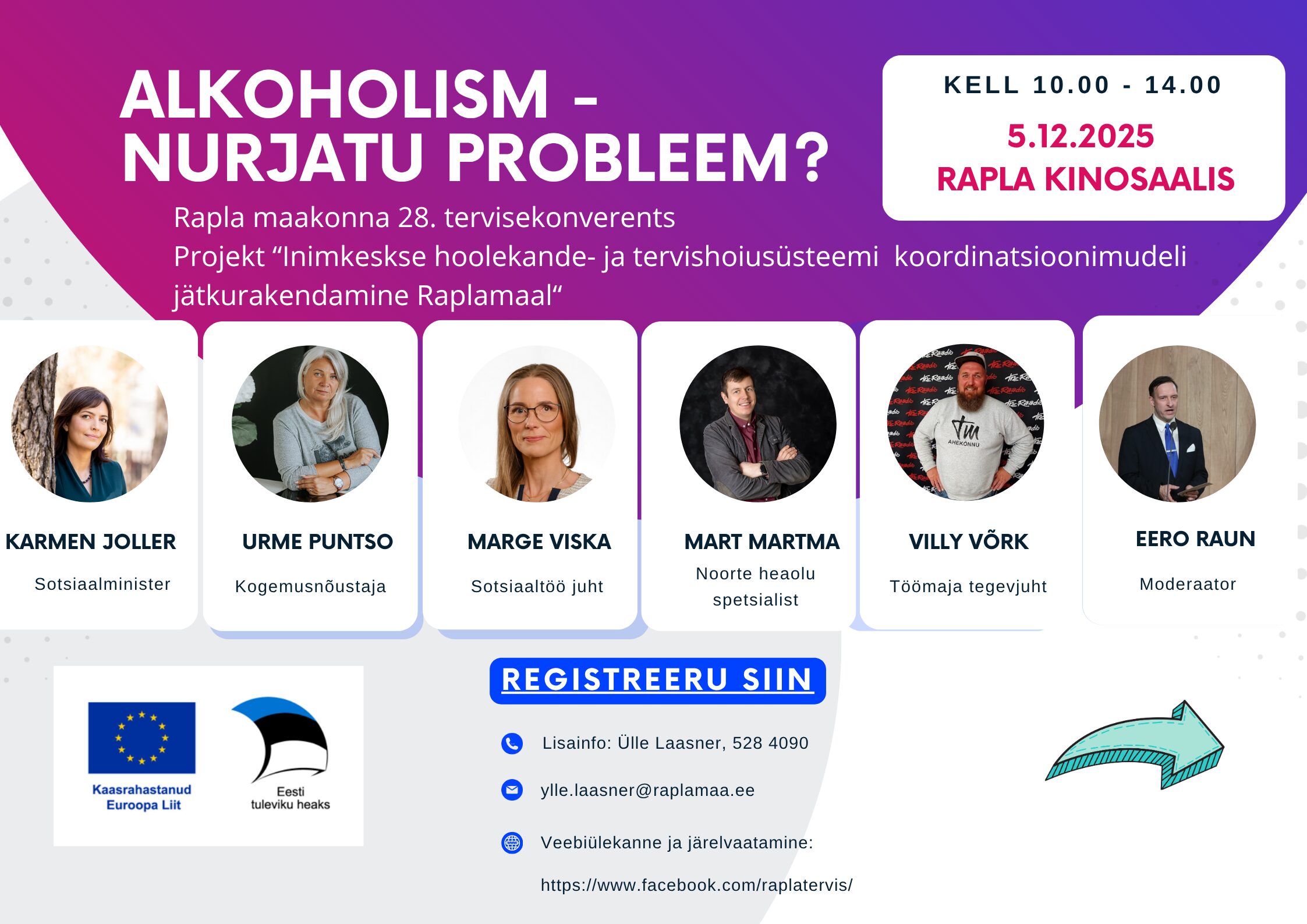Raplamaa konverentsil räägime sel korral alkoholismist kui sotsiaal- ja tervishoiusüsteemi ühest suuremast murekohast.